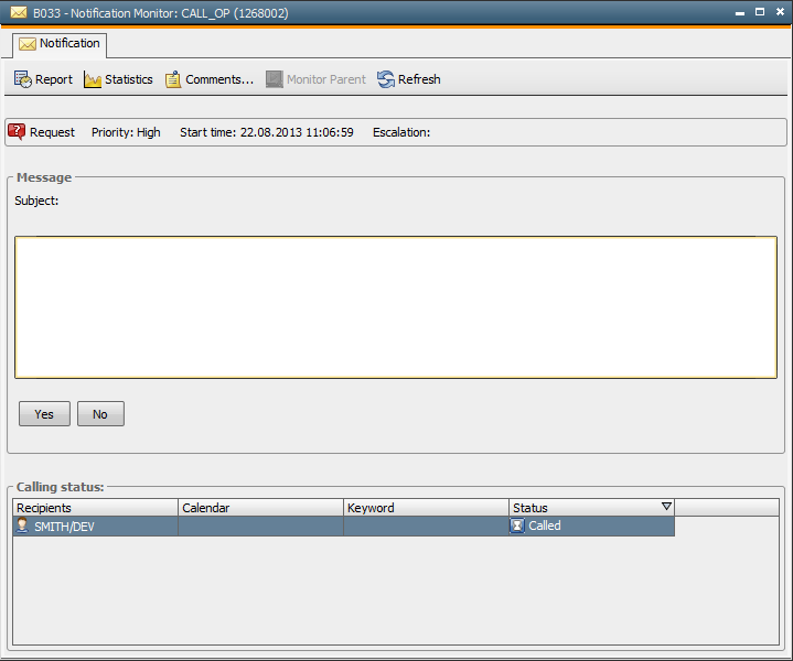Now create a new notification. Specify its priority and type (request, message, alert) and one or several users who should be notified.
