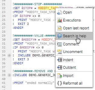 The Automation Engine script language helps you automate your processes. The Automic Scripting Guide helps you with the syntax, functions, parameters, etc. You can access it directly from within any of the Process pages of the object definition as follows: