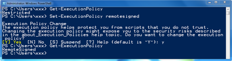 To change the Powershell script rights, open a Powershell Window on the affected Windows computer and specify the following command:
