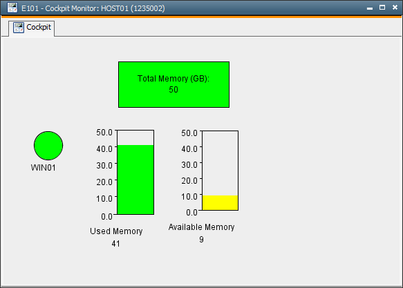 Now start the Event and Cockpit objects. The event stores the current values to the variable HOST_WIN01. Then highlight the Cockpit object in the Activity Window and open its monitor (click on the monitor symbol in the toolbar or right-click the context menu and select Monitor). The values are now displayed graphically: