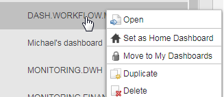 Right-click a Dashboard to open a context-menu to: