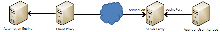 - Routing port: The port of the Proxy server to which components such as agents and the Automic Web Interface instances connect.
