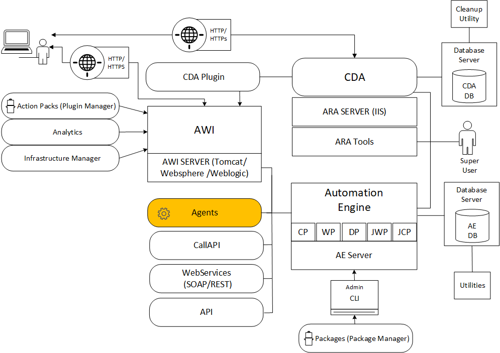 Agents are programs that run on the target system, which can be either an Operating System or an application such as SAP, PeopleSoft, etc. They not only establish the connection between the Automation Engine and those target systems but also start the execution of tasks and make both their monitoring and the corresponding reporting possible.