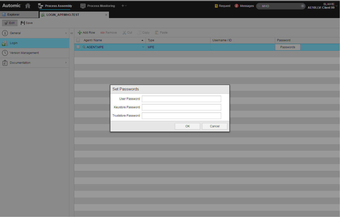 Dans la cellule Agent / Nom, saisissez le nom de l'agent pour lequel les informations de login s'appliqueront.