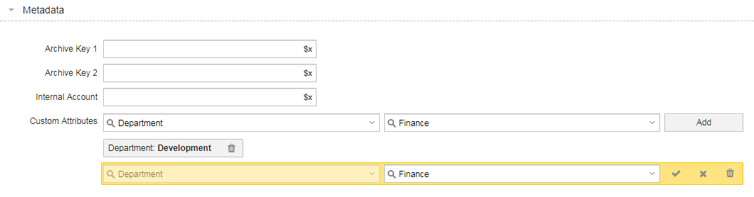 - Dans la section Métadonnées, sélectionnez les éléments suivants dans les deux listes déroulantes :