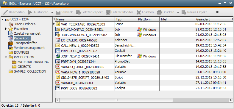 PapierkorbHier finden Sie die Beschreibung für die Verwendung des Papierkorbs im Explorer, der die gelöschten Objekte enthält.