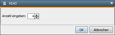 Durch die :READ-Anweisung wird ein Dialogfeld ausgegeben, dessen Aussehen und Funktion von den verwendeten Parametern abhängt. Der Name des Objektes ist in der Titelzeile dargestellt. Über ein Eingabefeld wird die Benutzereingabe entgegengenommen und in eine Script-Variable eingelesen.