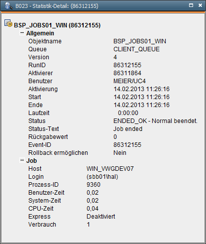 Wurde der Job beendet, entfernt sich die Aufgabe standardmäßig aus dem Aktivitätenfenster. In der Registerkarte Attribute des Job-Objektes kann dieses Verhalten jedoch geändert werden.