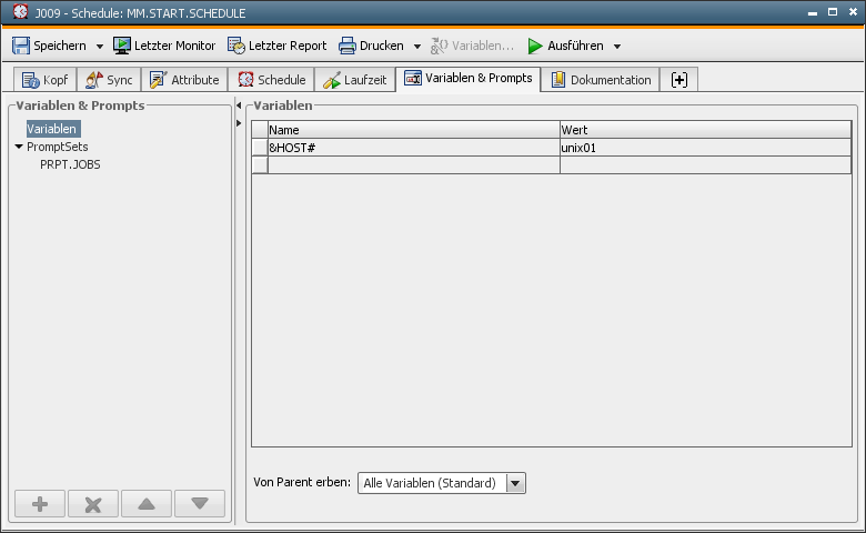 Sowohl Objektvariablen als auch PromptSet-Variablen können vom übergeordneten Objekt geerbt werden. Die Aufgaben eines Schedule-Objektes können beispielsweise die Objektvariablen des Schedule-Objektes nutzen.