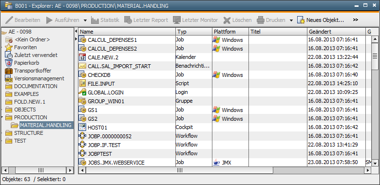 Die Auswahl des Befehls "Objekt hinzufügen" des Kontextmenüs öffnet ein spezielles Explorerfenster, welches eine übersichtliche Objektauswahl aus der Ordnerstruktur ermöglicht. Dabei werden nur Objekte des Typs angezeigt, die auch für das Feld erlaubt sind, aus dem Aufruf erfolgte. Dies kann nur ein bestimmter Objekttyp sein (Beispiel: Login-Feld) oder mehrere (Beispiel: Laufzeit - Sonst - Ausführen: alle ausführbaren Objekte). Der Explorer wird in dem Ordner geöffnet, in dem sich das im Feld eingetragene Objekt befindet.