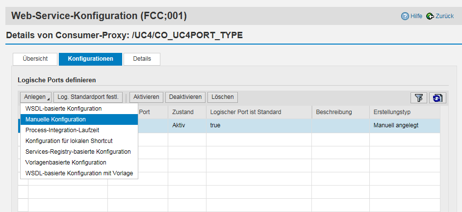 Vergeben Sie einen Namen für die RFC-Destination (zum Beispiel: UC4_WEBSERVICE) und eine Beschreibung.
