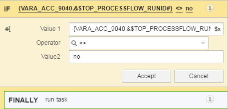 - Wenn der in das VARA-Objekt geschriebene Wert für die aktuelle RunID GLEICH no ist, dann
