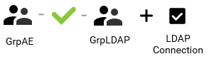 - Die AE-Benutzergruppe "GrpAE" ist der LDAP-Gruppe "GrpLDAP" zugeordnet
